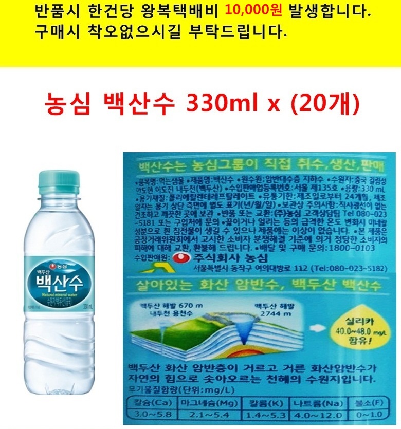 농심 백산수 330ml, 20개