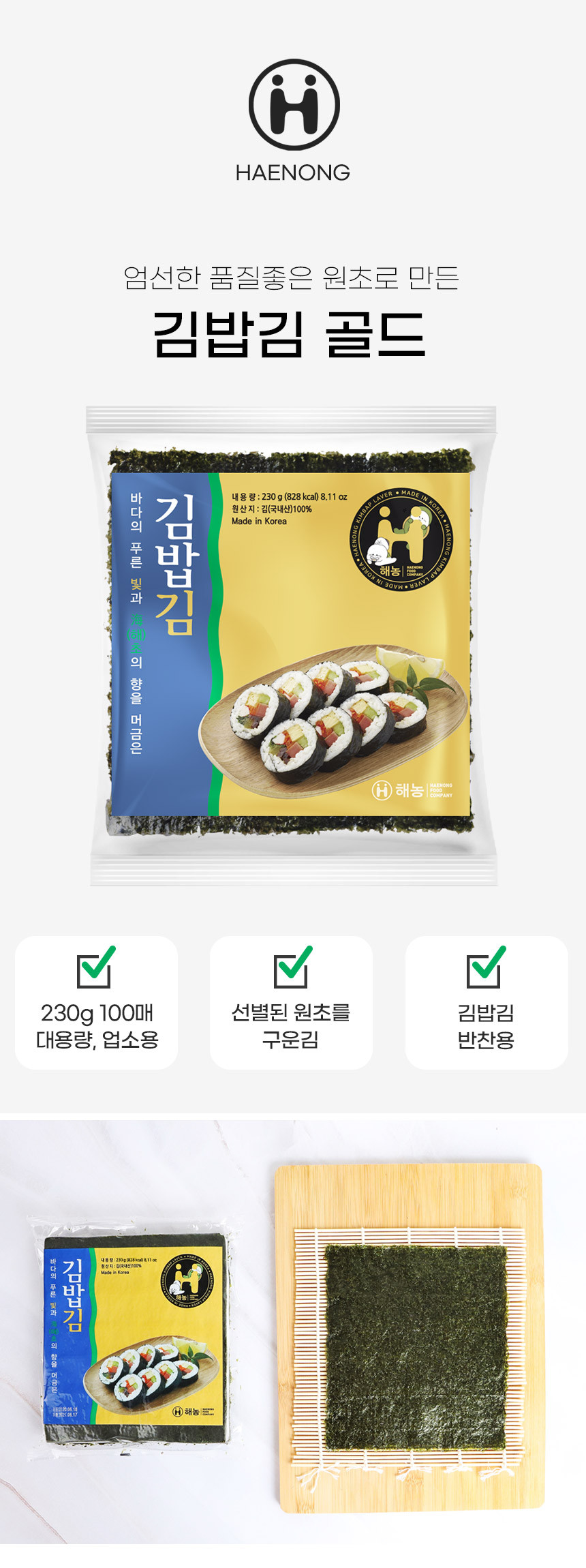 간단설명 : 김밥용으로 두번구운 A급 김밥김입니다.