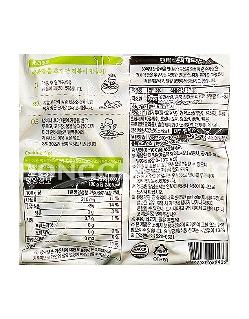 면사랑 밀떡볶이 1kg(냉장/밀97%) 이미지