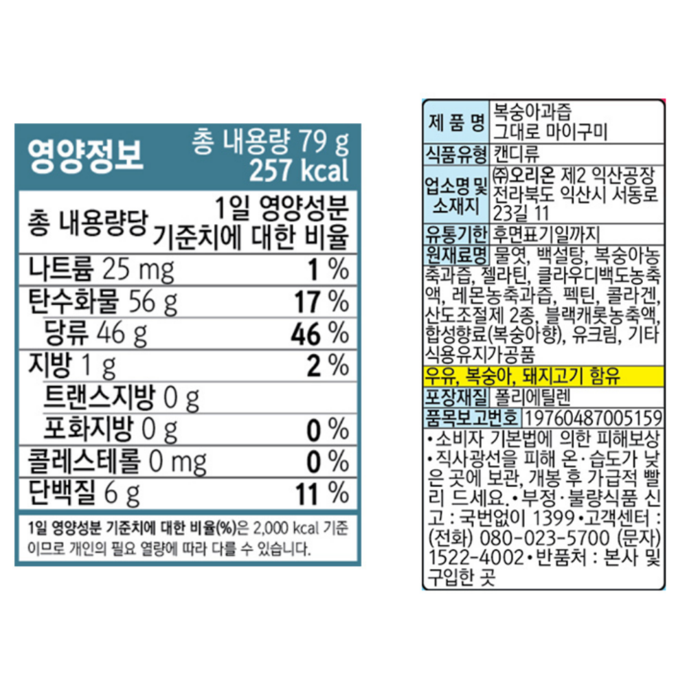 마이구미 복숭아 79G 오리온 이미지
