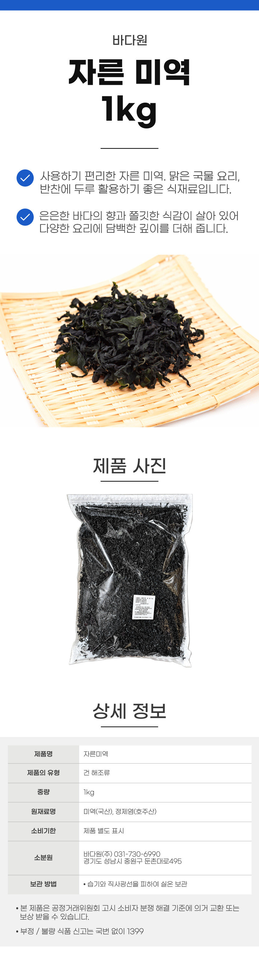 자른 건미역 1kg 국산