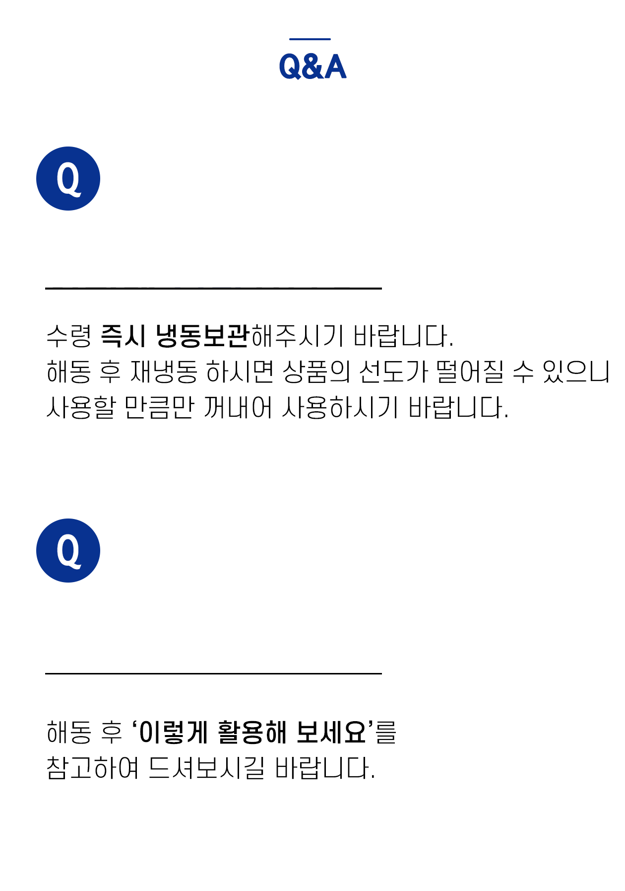 <하절기에는 소량 주문시 제품이 녹을 수 있습니다. 가급적 박스단위로 주문을 해주시고, 박스단위 주문이 어려우신 경우에는 주문전 고객센터로 연락 주시면 최대한 덜 녹을 수 있도록 안내드리겠습니다.>