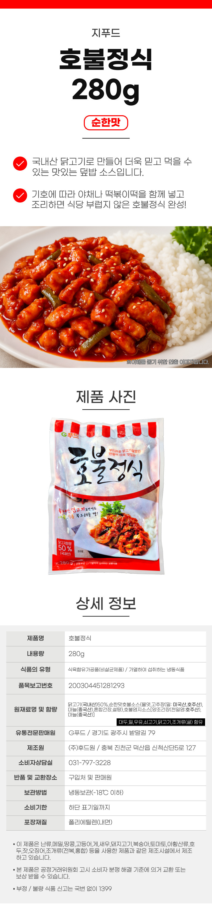 지푸드 호불정식 순한맛 280g (닭갈비 덮밥) 이미지