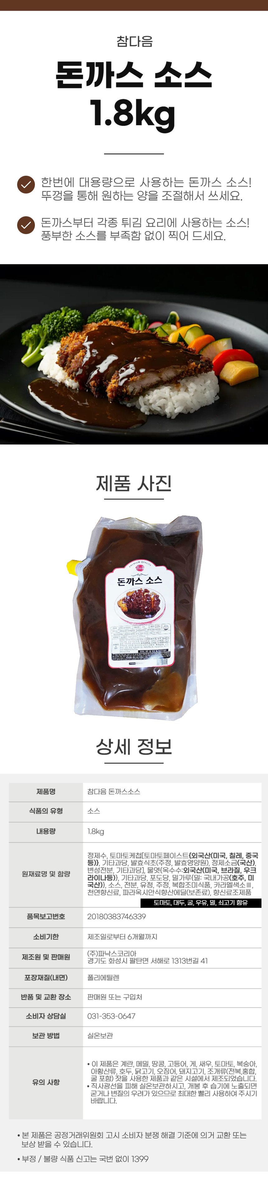 참다음 돈까스 소스 1.8kg