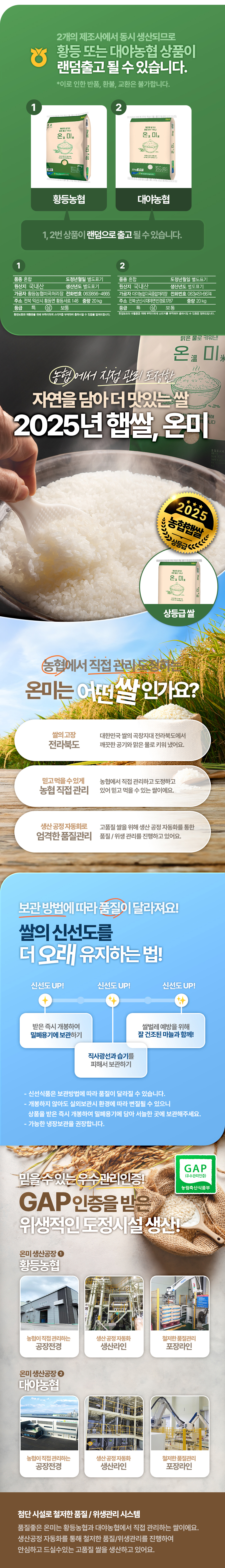 [25년산 햅쌀]★초특가★농협 온미 쌀20Kg 상등급