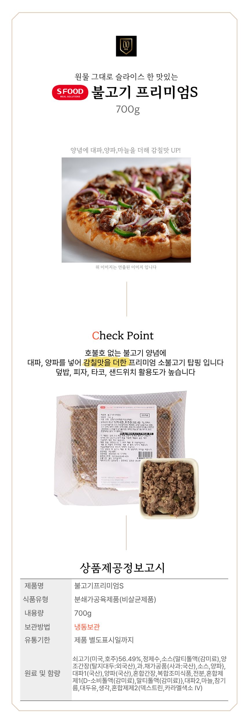 에쓰푸드 불고기 프리미엄S 700g 피자토핑 고기토핑 샌드위치 이미지
