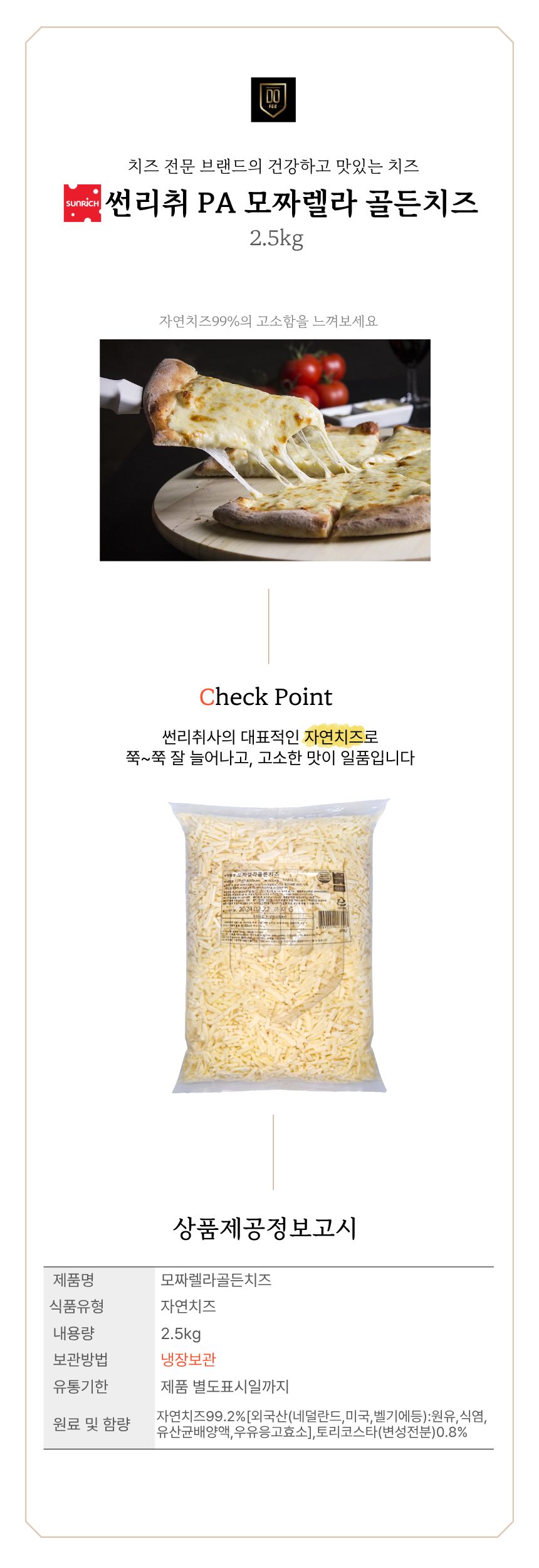 썬리취 PA 모짜렐라 골든치즈 자연치즈100% 피자치즈 모짜렐라