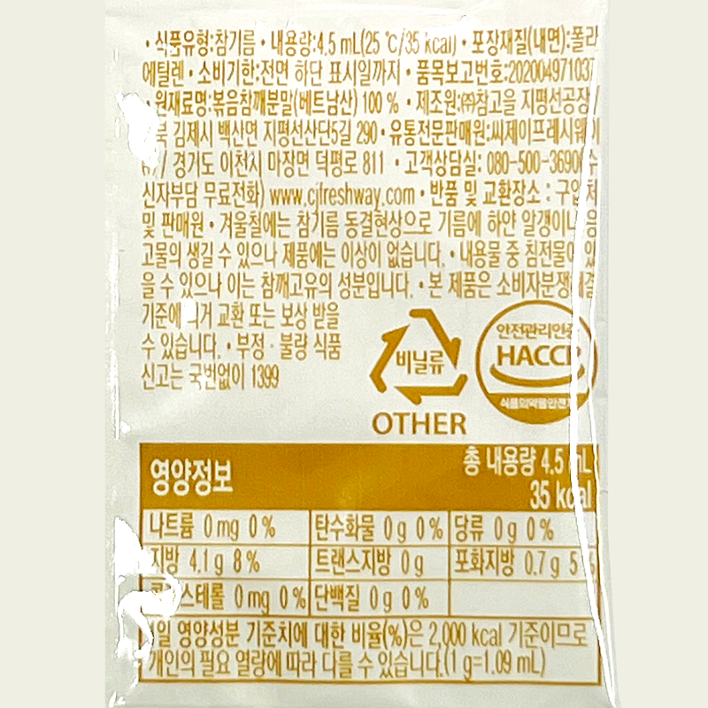 이츠웰 참기름(4.5ml_500입 2.5Kg/BOX)