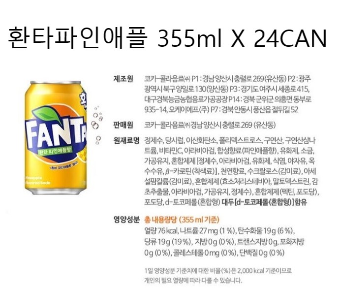 환타파인애플향355ml X 24캔