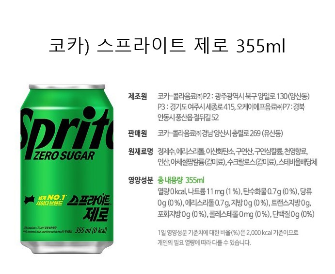 코카)스프라이트제로뚱캔355X24(업소용) 이미지