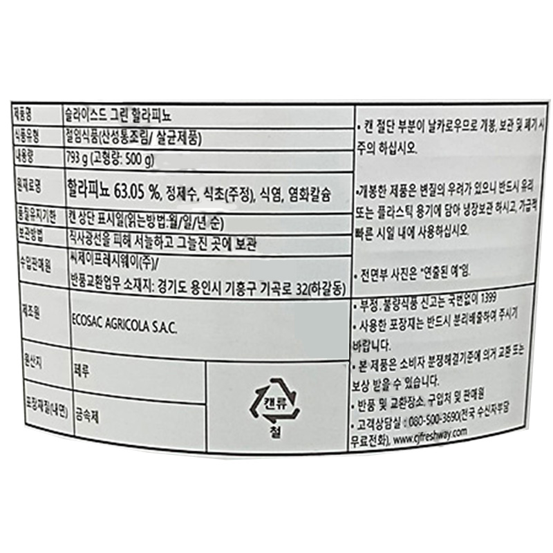 에코삭 할라페뇨(원터치_슬라이스 793g/EA) 할라피뇨 이미지