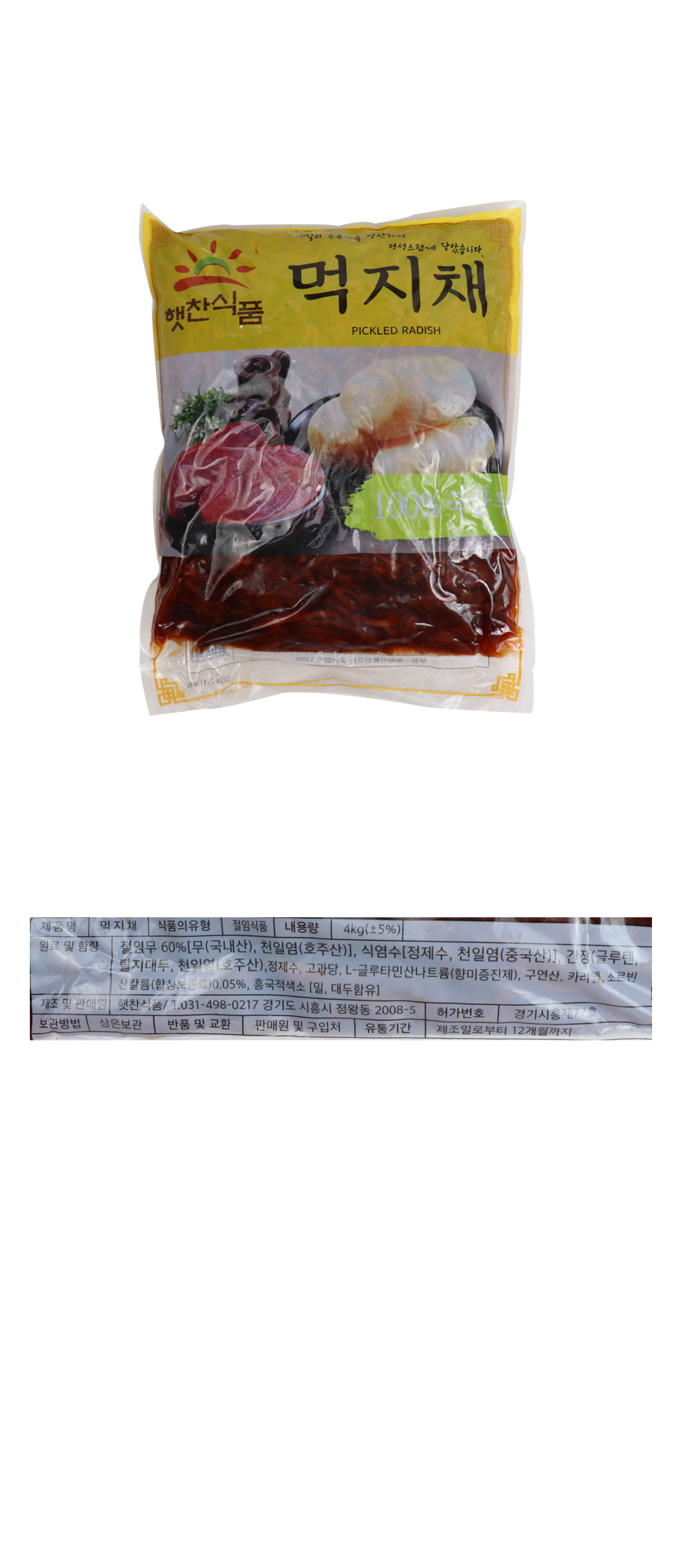 햇찬식품 먹지(국내산) 4kg  무먹지 무장아찌 절임무 짠지 이미지