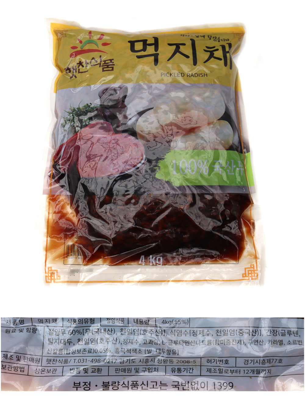 햇찬식품 먹지채(국내산) 4kg 무먹지 무장아찌 절임무 짠지 이미지