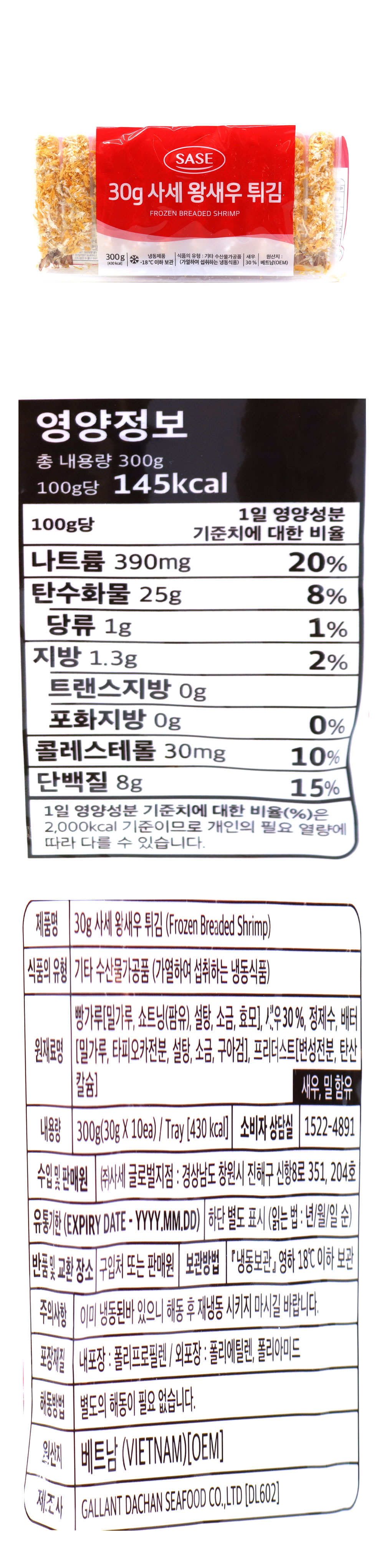 사세 왕새우튀김10미(30g*10미/베트남) 300g 새우튀김
