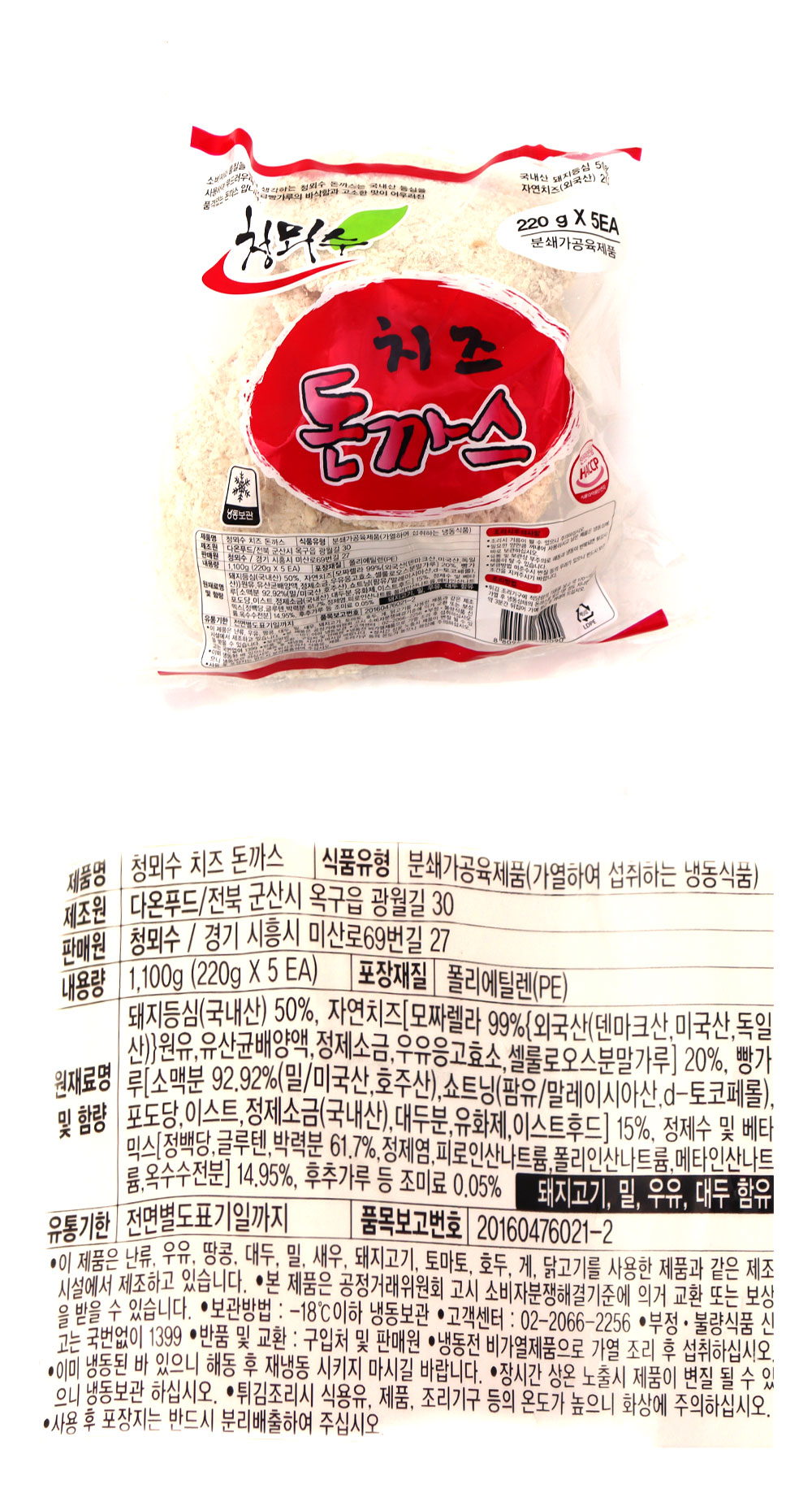 다온 청뫼수 수제치즈돈까스(220g*5입) 1.1kg 치즈돈가스 이미지
