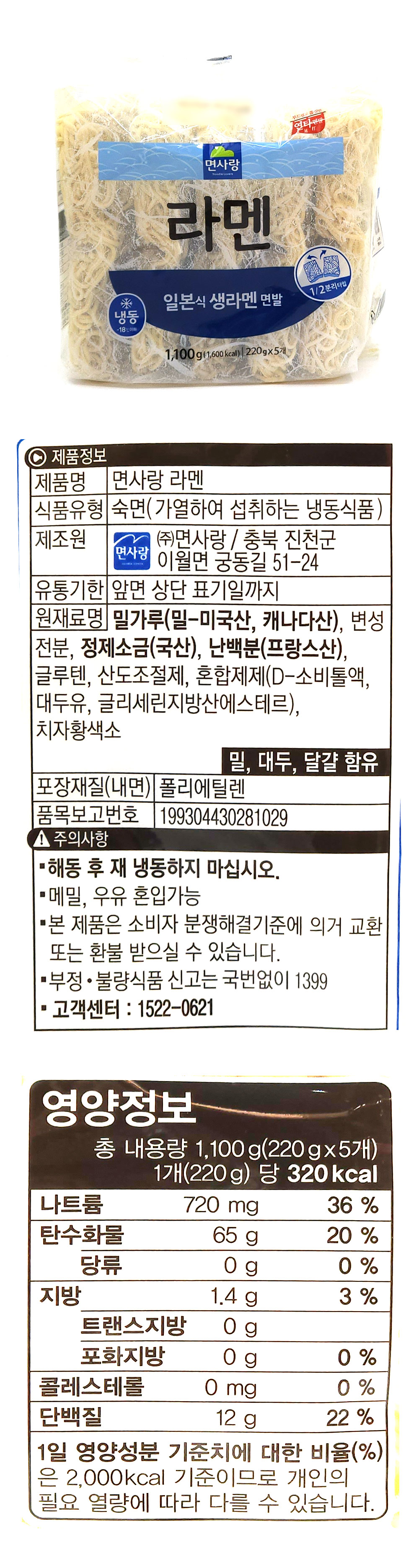 면사랑 냉동라멘(220g*5입) 1.1kg