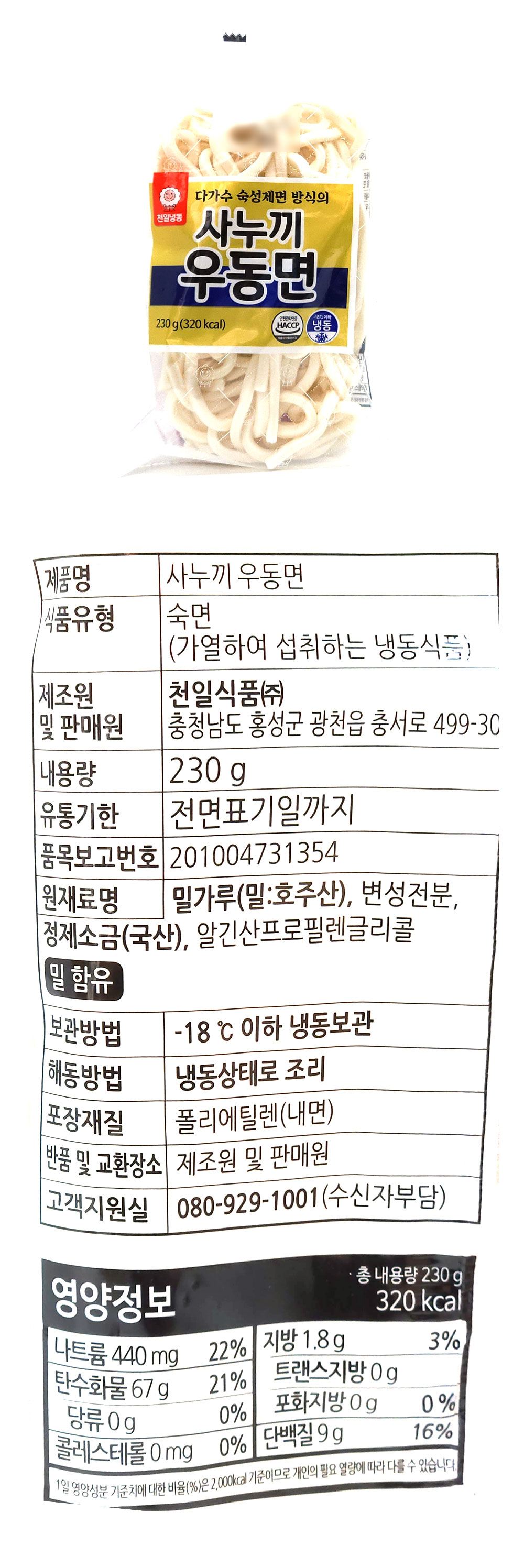 천일우동면(낱개) 230g