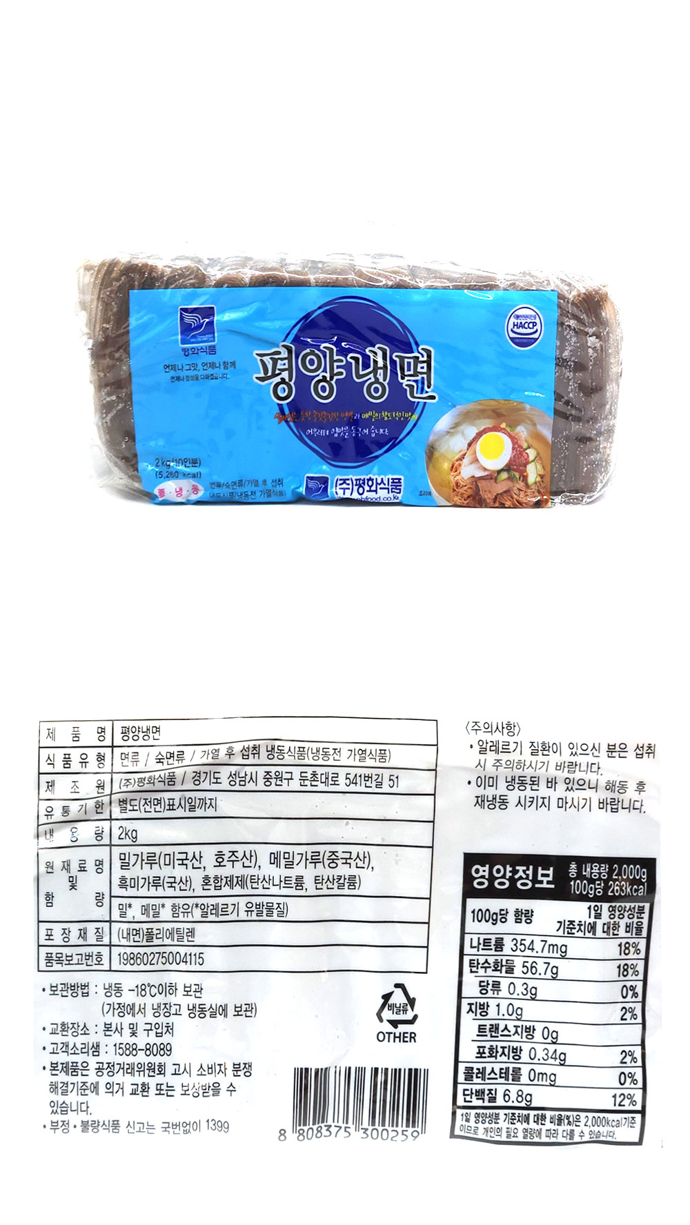 밀가루(미국산, 호주산), 메밀가루(중국산), 흑미가루(국산), 혼합제제(탄산나트륨, 탄산칼륨)