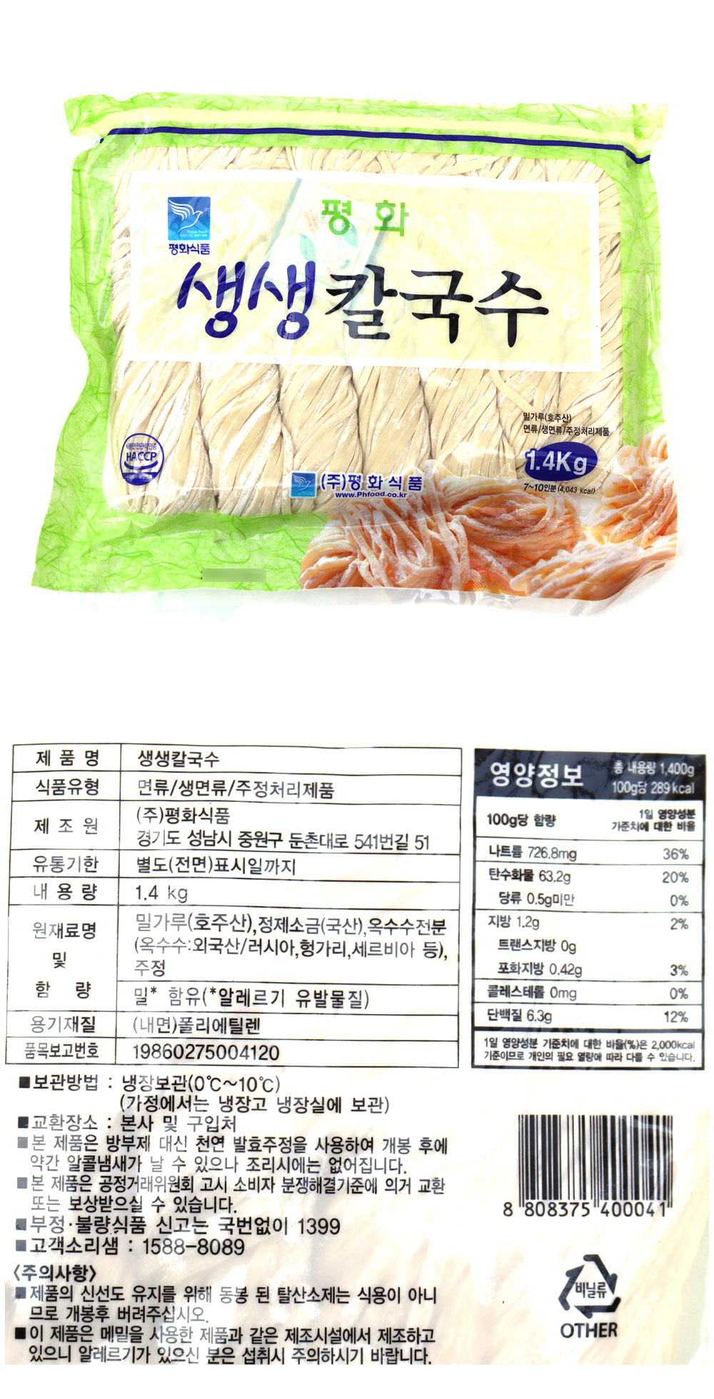 밀가루(호주산), 정제소금(국산), 옥수수전분(옥수수: 외국산 / 러시아, 헝가리, 세르비아 등), 주정 * 밀 함유