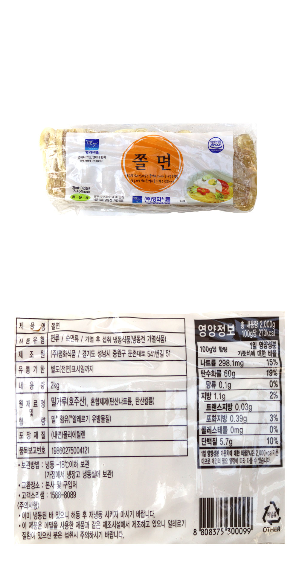 평화식품 쫄면사리 2kg 이미지