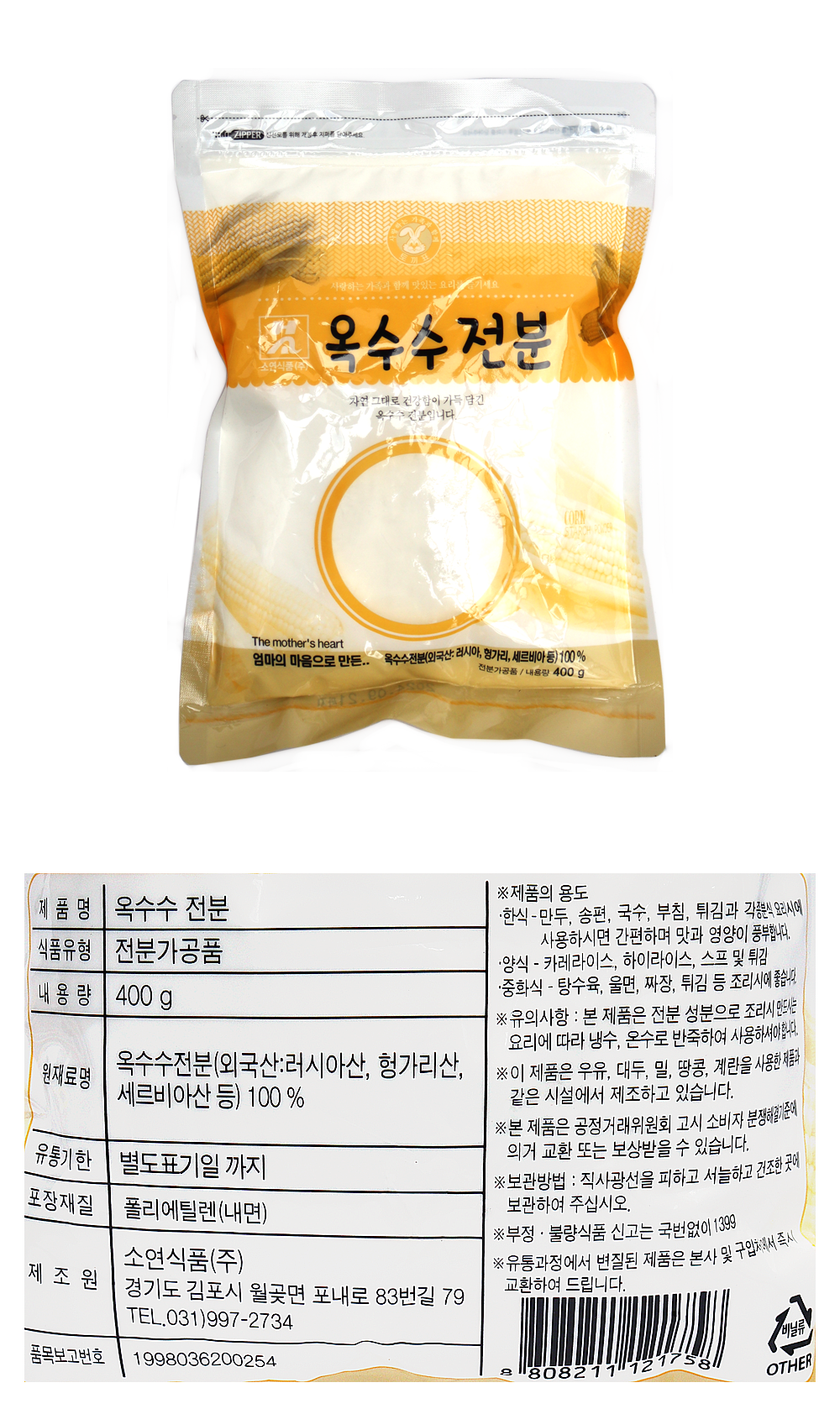 소연 옥수수전분 100% 400g 이미지