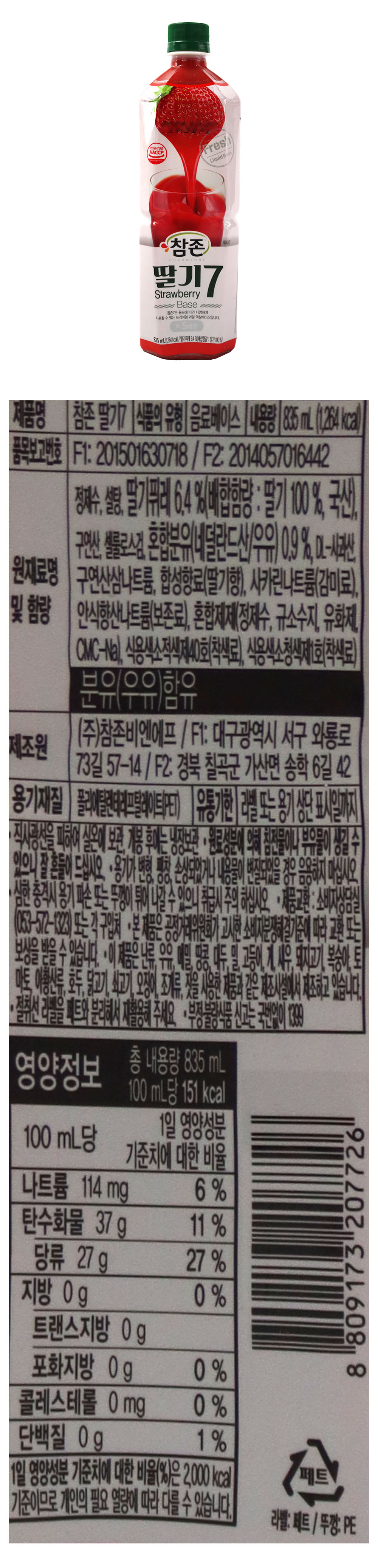 참존 딸기원액 음료베이스(PET) 835ml 이미지