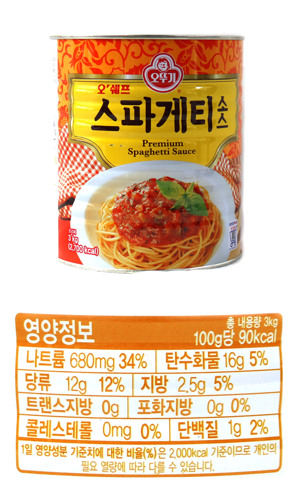 오뚜기 오쉐프 스파게티소스 3kg 파스타소스 토마토소스 이미지