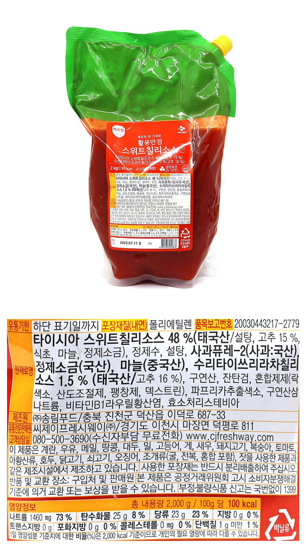 이츠웰 튀김엔 스위트칠리소스 2kg 이미지