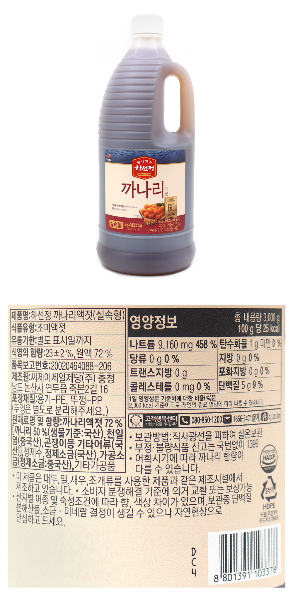 하선정 까나리액젓 3kg