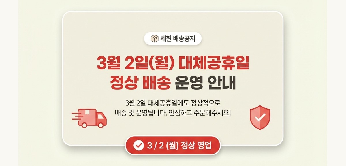 • 택배배송의 경우, 주말 및 공휴일 전일 및 당일에는 상품 발송이 어려울 수 있습니다.