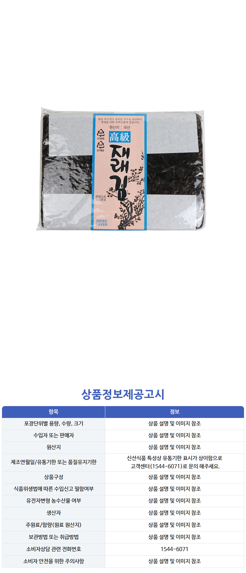 고급 생 재래김 100장 이미지