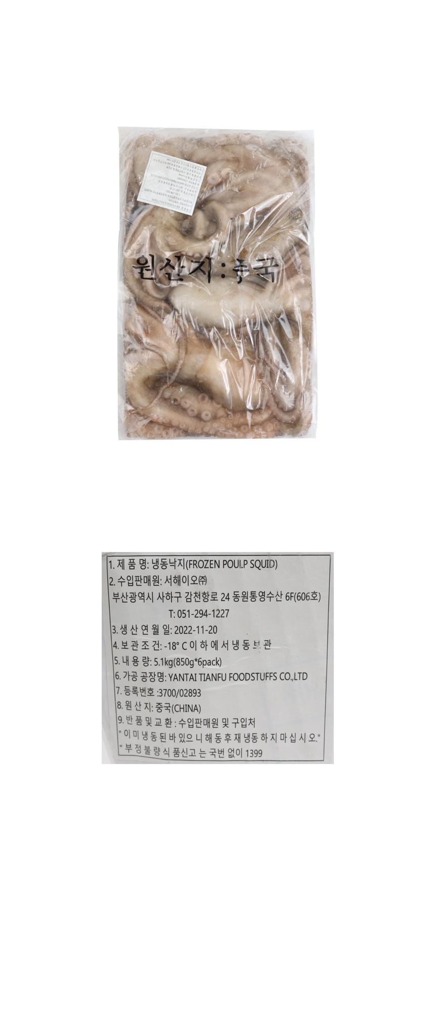 냉동 손질 낙지4미 (200/300) 5.1Kg