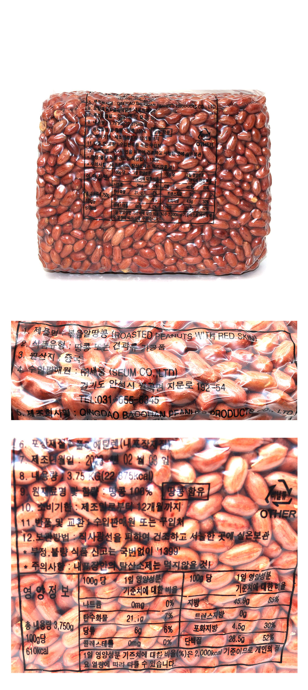 볶음땅콩(속껍질有/중국) 3.75kg 관땅콩 땅콩