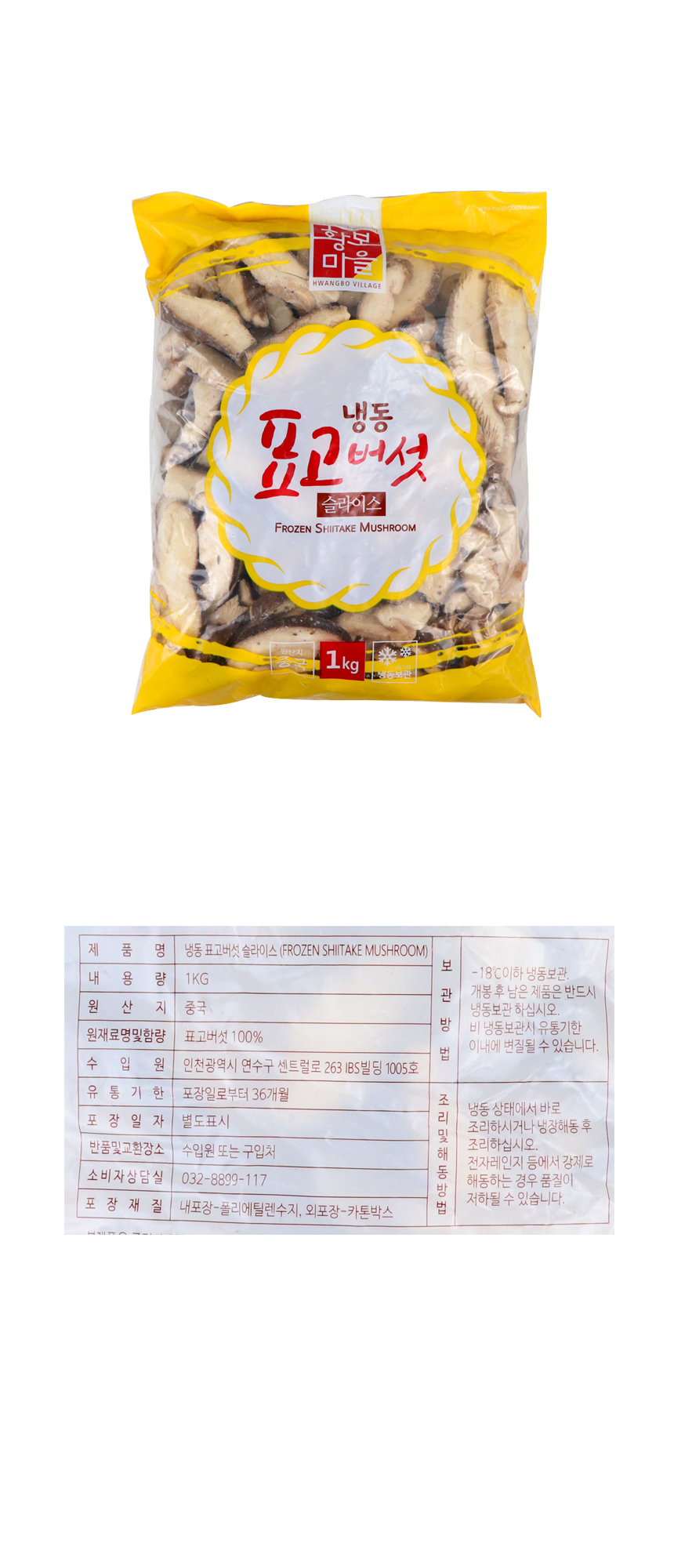 황보마을 냉동 표고버섯 슬라이스(중국산) 1kg
