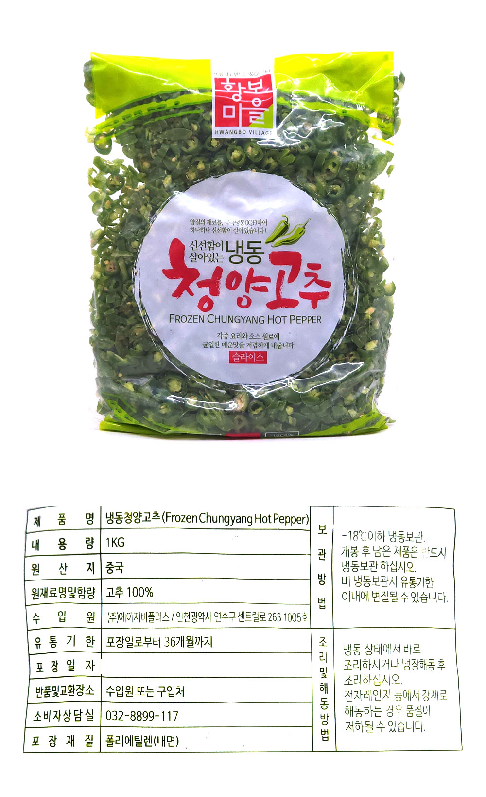 황보마을 냉동청양고추 슬라이스(중국산) 1kg