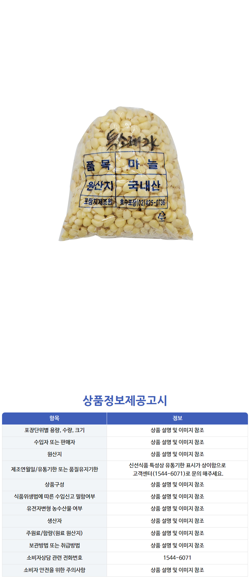 깐마늘(통마늘/특小/채/국산/대만종) 2kg 이미지