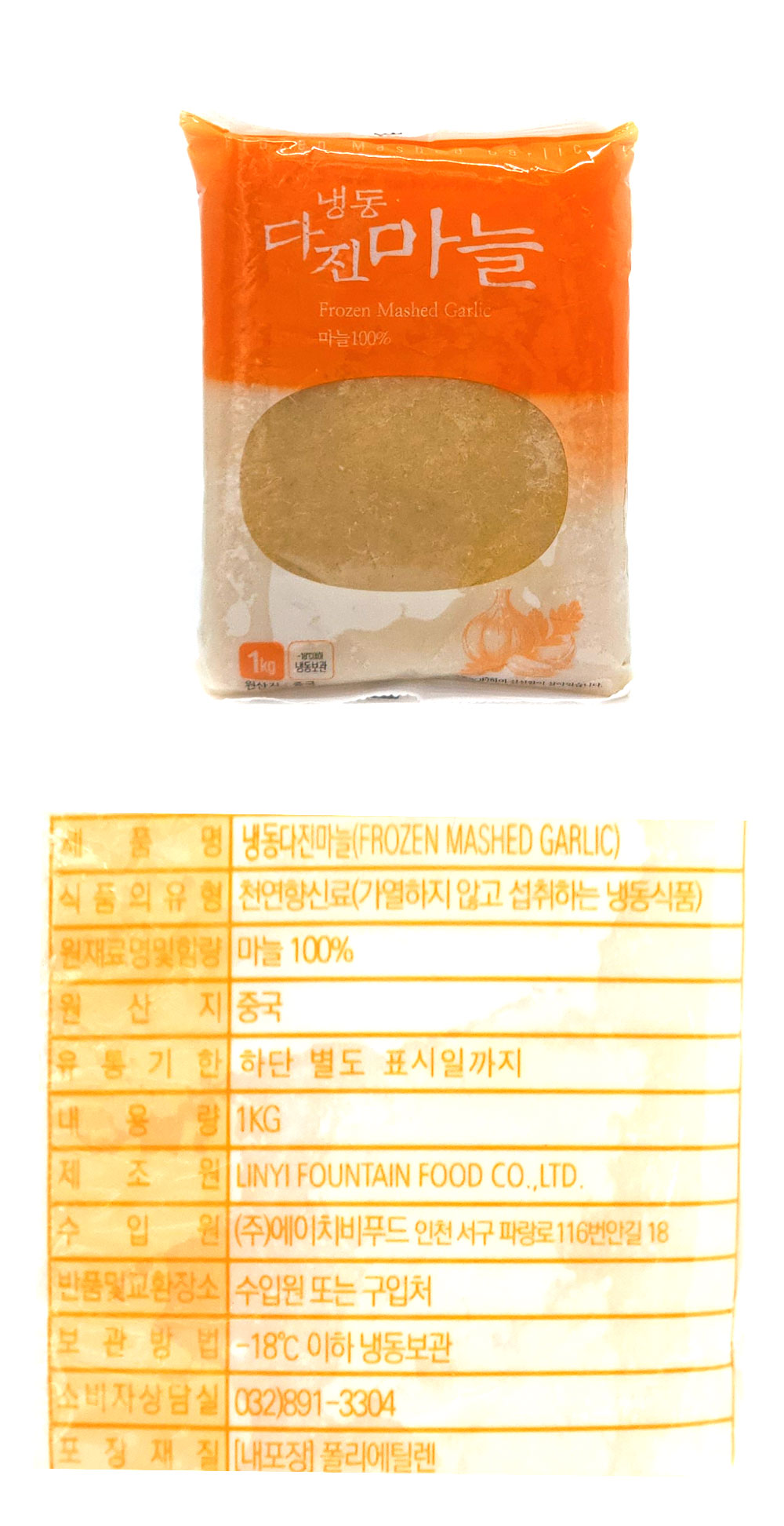 황보마을 냉동다진마늘(간마늘/수입) 1kg