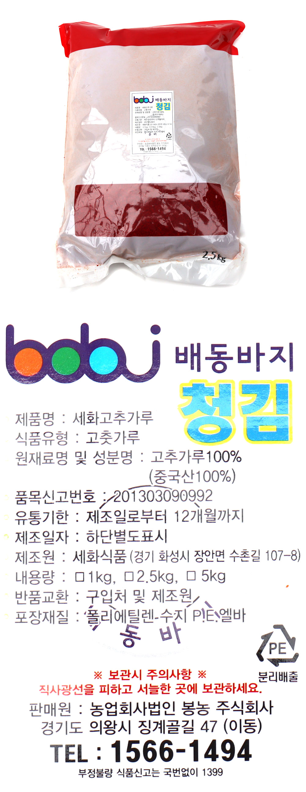 고춧가루(중간/매운맛) 2.5kg 고추가루