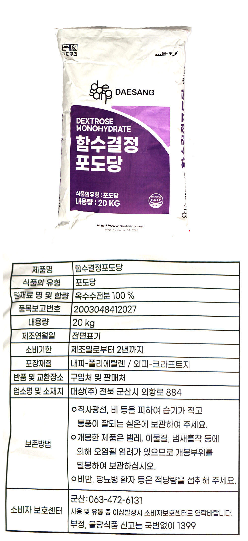대상 포도당 20Kg 이미지