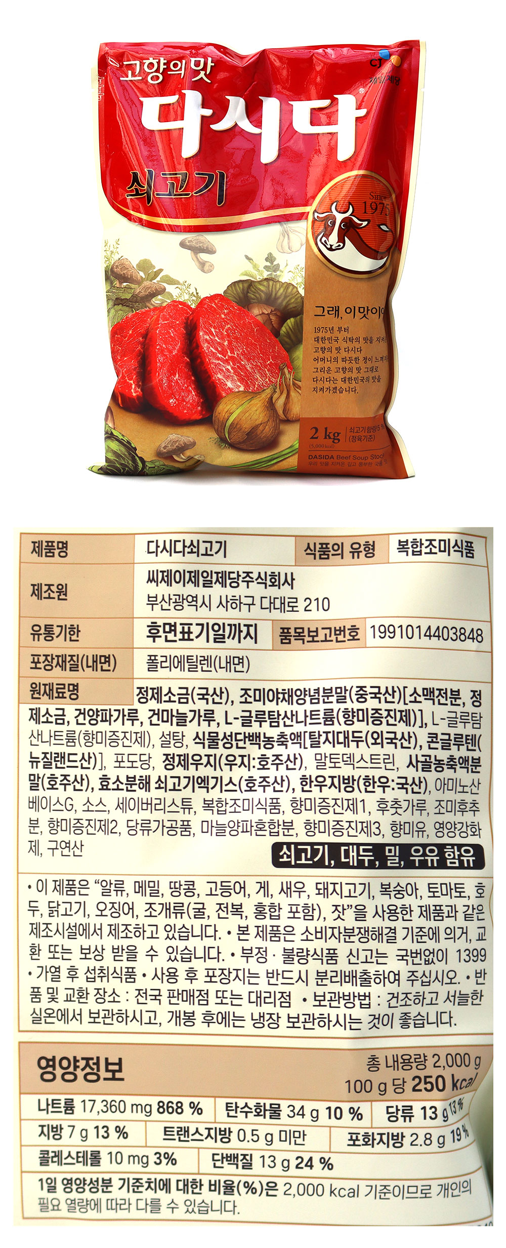 백설 쇠고기다시다 2kg 다시다 조미료 소고기다시다
