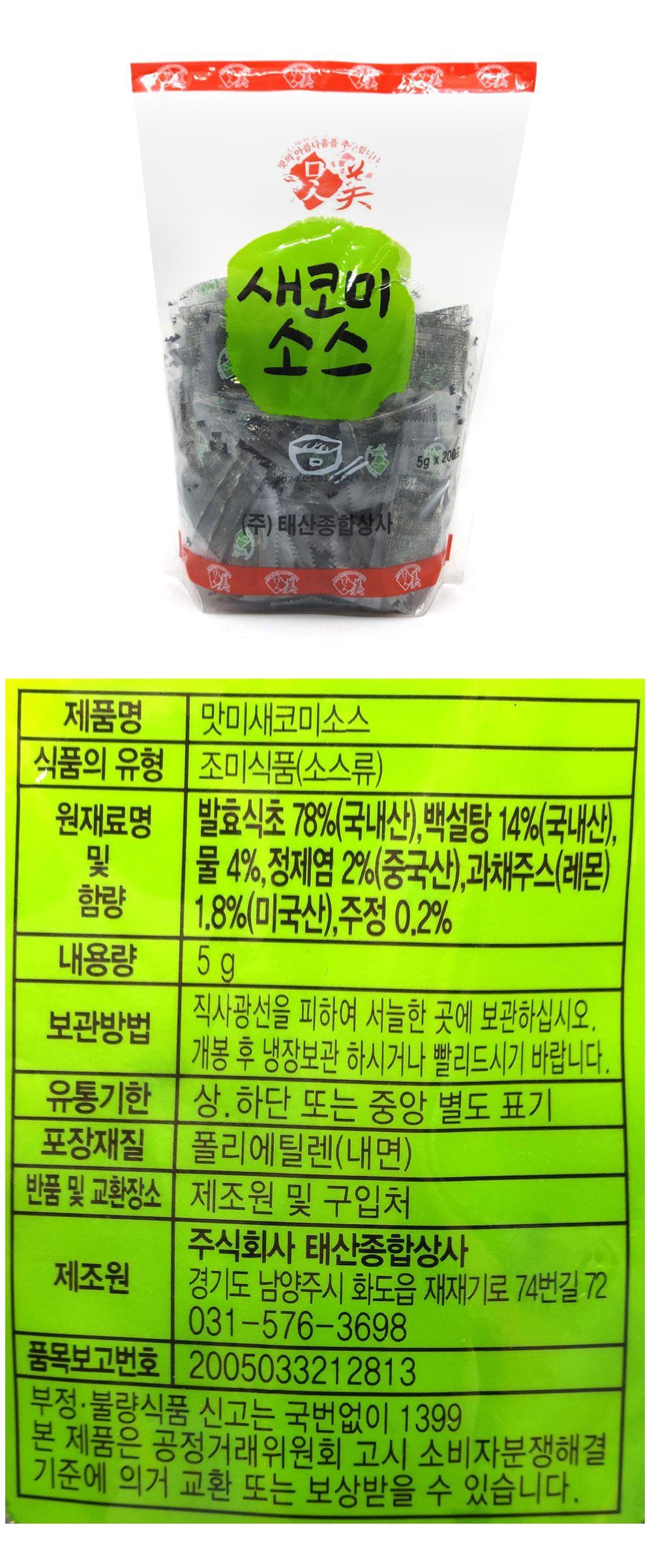 태산 맛미 새코미 소스 (5g*200입) 일회용식초 냉면식초 이미지
