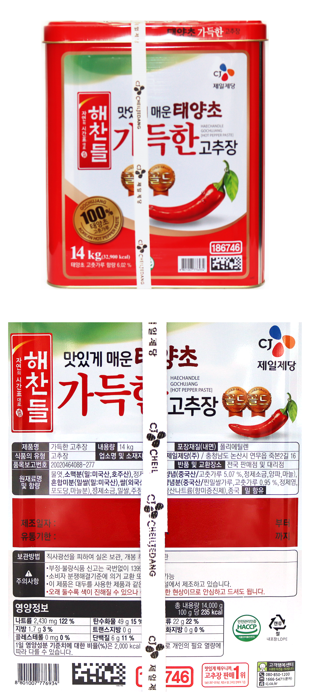 해찬들 태양초 가득한 고추장 14kg 이미지