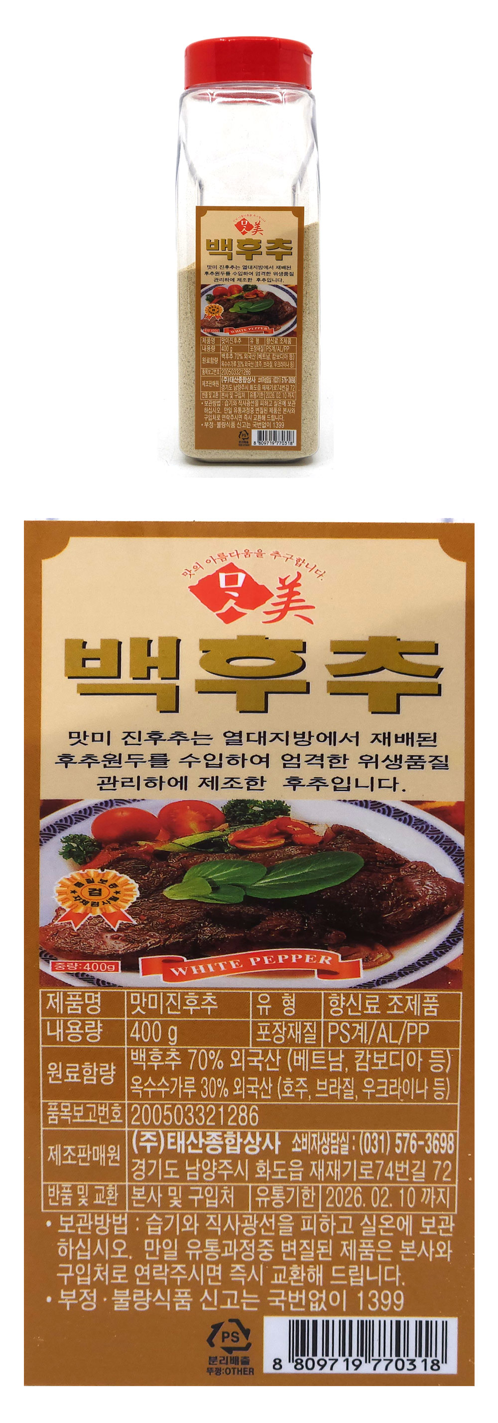 태산백후추70%(용기) 400g 이미지