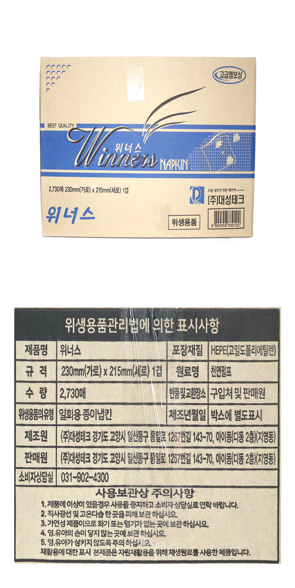 위너스 평판네프킨(테이블용/230mm*215mm) 박스 이미지