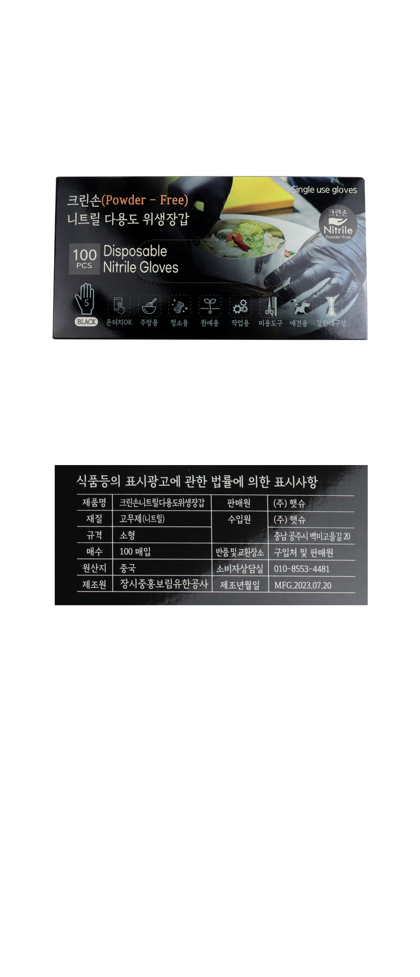 니트릴/라텍스장갑 S(검정) 100매 이미지