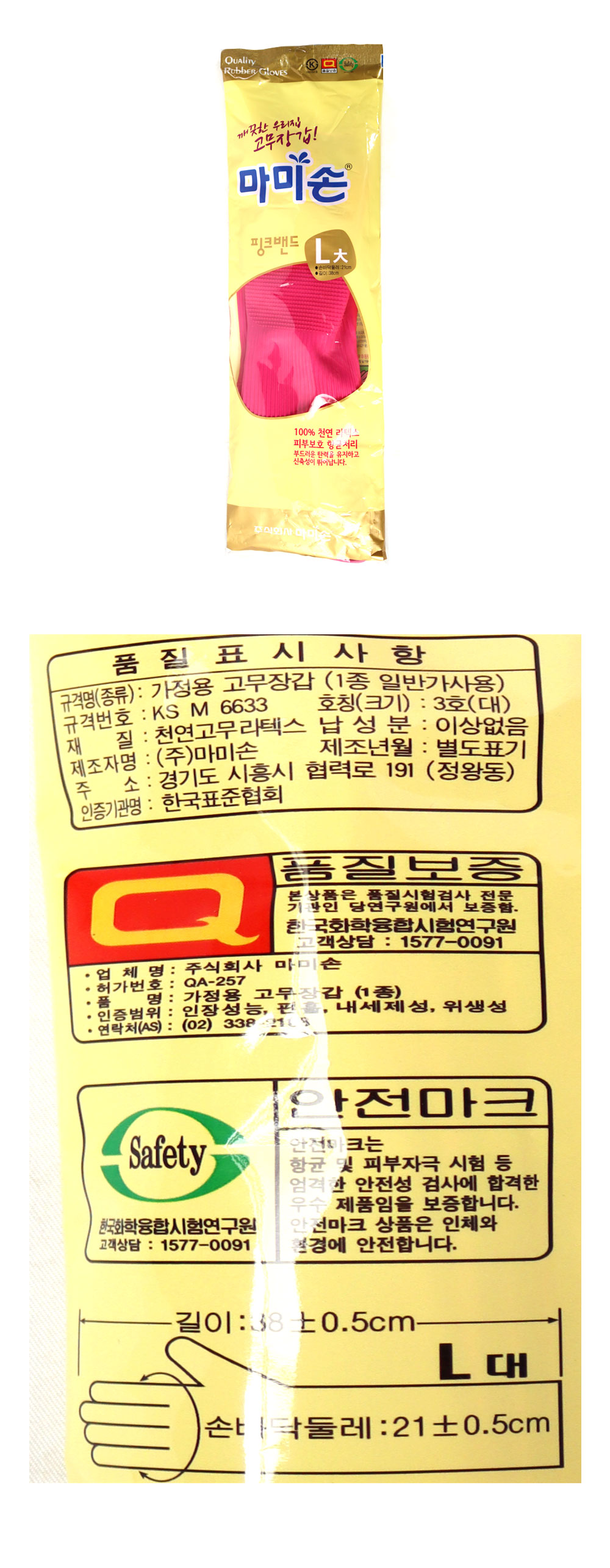마미손 고무장갑(핑크L/21.5*38cm) 이미지