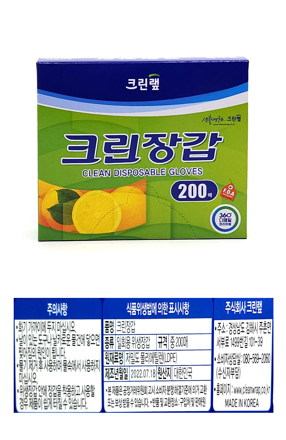크린 위생장갑(200매)