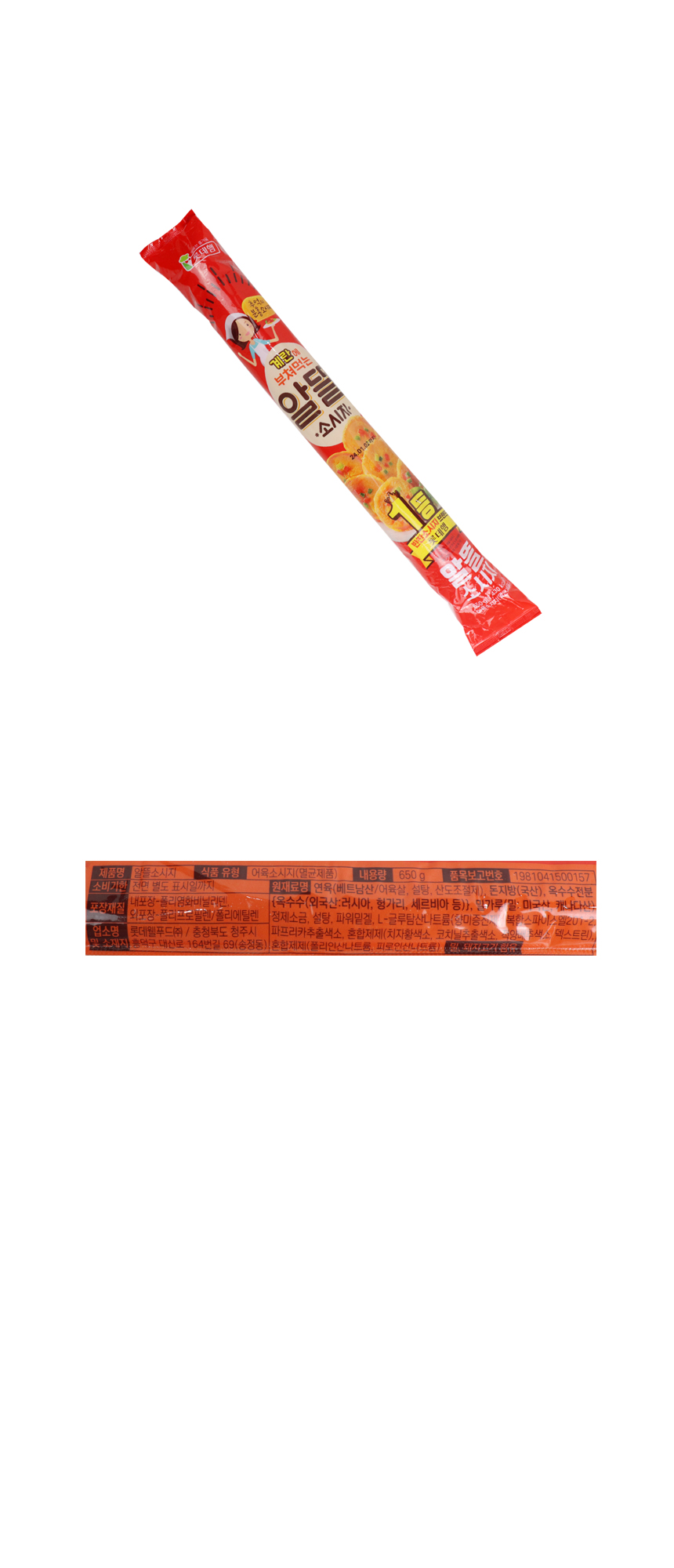 연육(베트남산/어육살, 설탕, 산도조절제), 돈지방(국산), 옥수수전분(옥수수(외국산 : 러시아, 헝가리, 세르비아 등)), 밀가루(밀: 미국산, 캐나다산), 정제소금, 설탕, 파워밑겔, L-글루탐산나트륨(향미증진제(복합스파이스엘), 파프리카추출색소, 혼합제제(치자황색소, 코치닐추출색소, 적양배추색소, 덱스트린), 혼합제제(폴리인산나트륨, 피로인산나트륨) * 밀, 돼지고기 함유