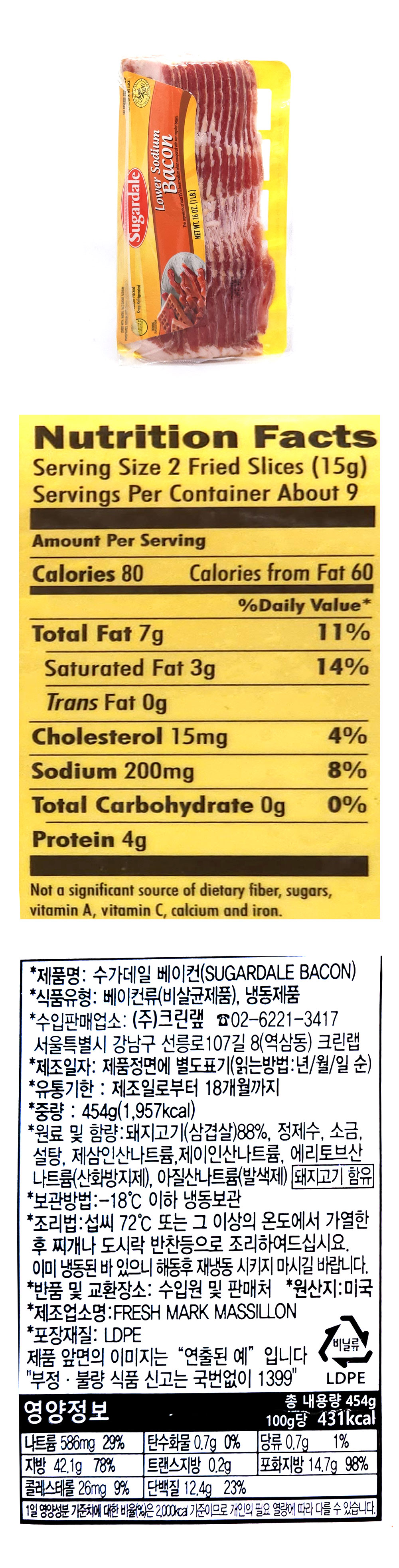 슈가데일 베이컨(미국) 454g 저염베이컨 피자 토핑