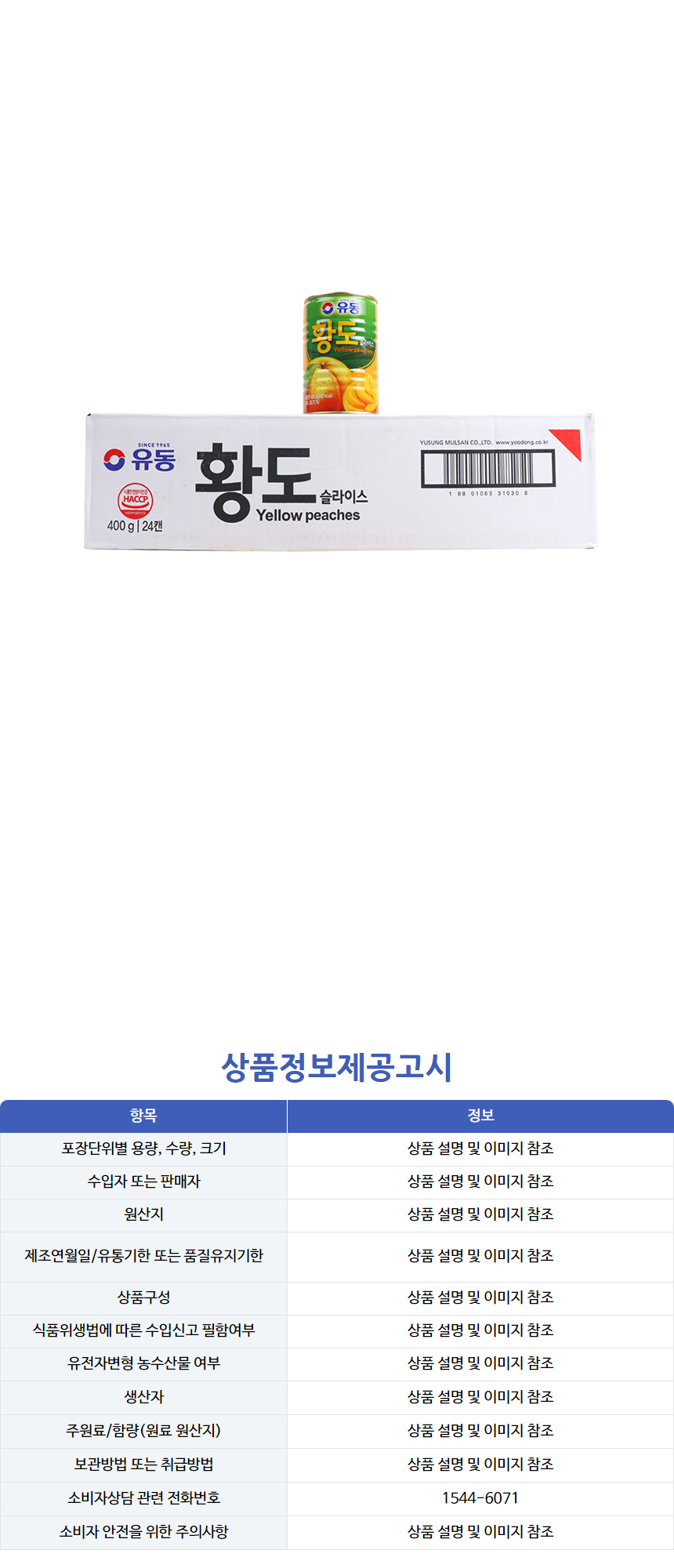 정제수, 황도(복숭아: 중국산), 백설탕, 구연산(결정), 비타민씨 * 복숭아 함유